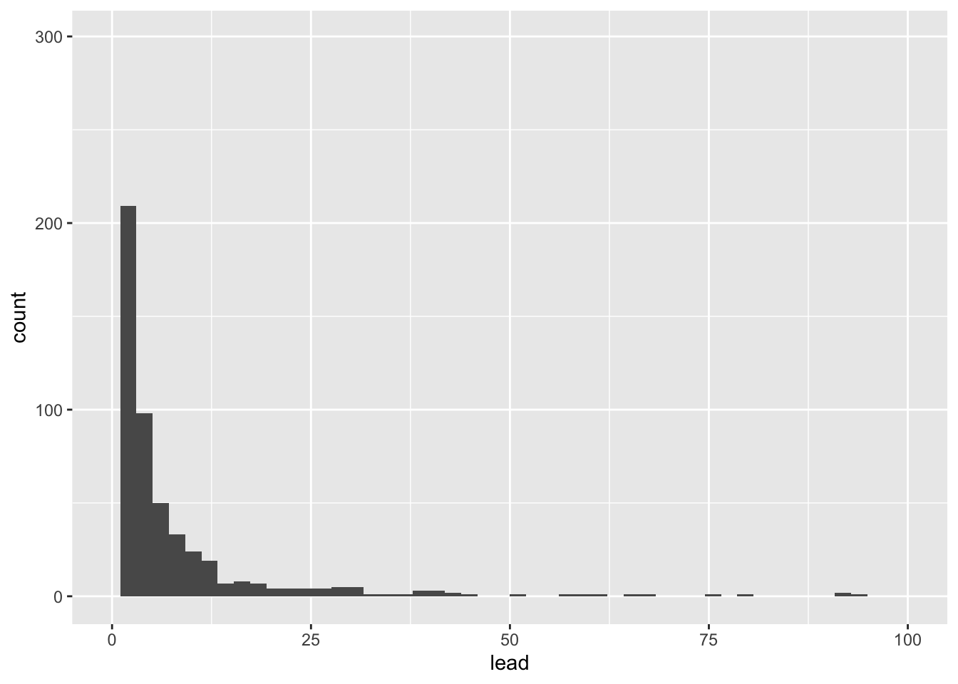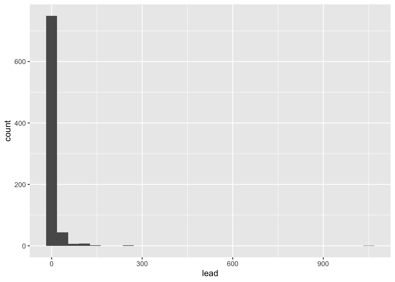 Let’s take a look at the distribution of lead content in homes in Flint, MI.